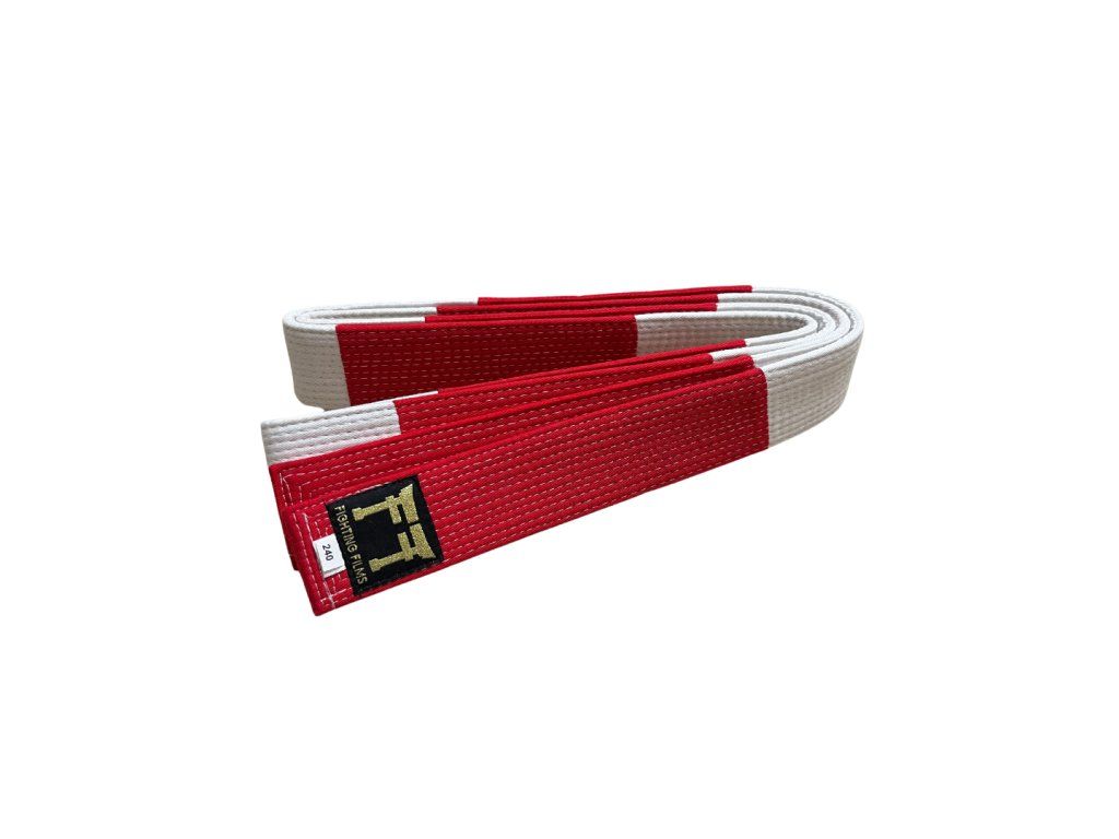 FIGHTING FILMS červenobílý pás judo pro 6. až 8. Dan je zárukou vynikající kvality na světovém trhu.
